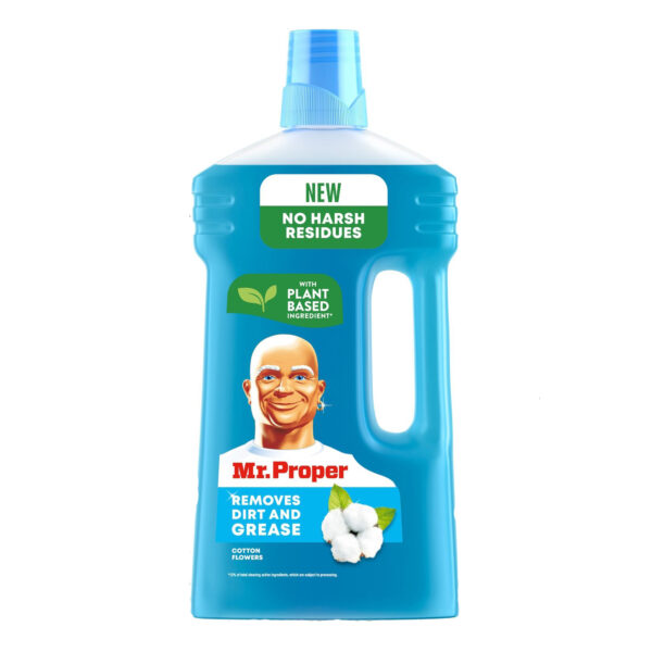 Рідкий миючий засіб для прибирання підлоги та стін, підходить для різноманітних поверхонь, включаючи лаковані поли та ламінат. Аромат: Квіти